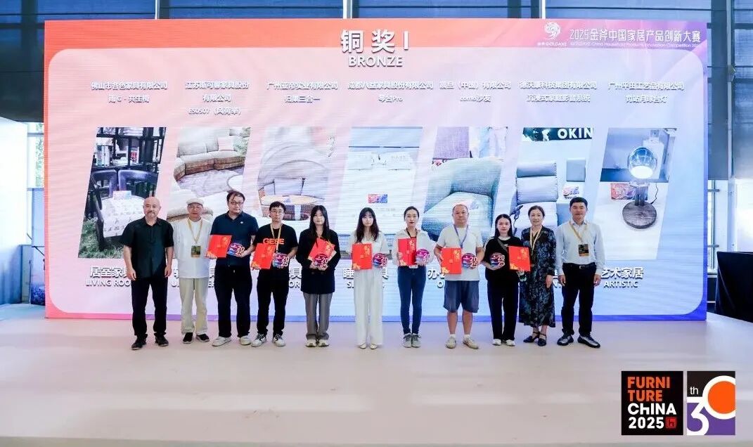 2025金斧中国家居产品创新大赛专家评委彭亮、于历战、陈春华、陈于书颁发单品类铜奖荣誉证书和奖杯